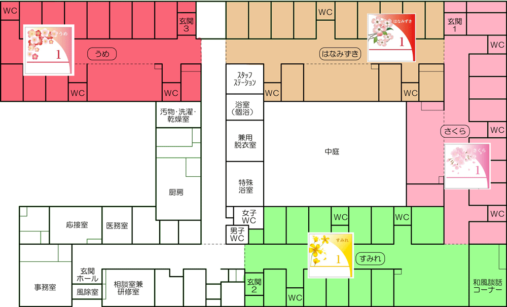 特別養護老人ホーム華のさとは全室個室のユニット型施設です。